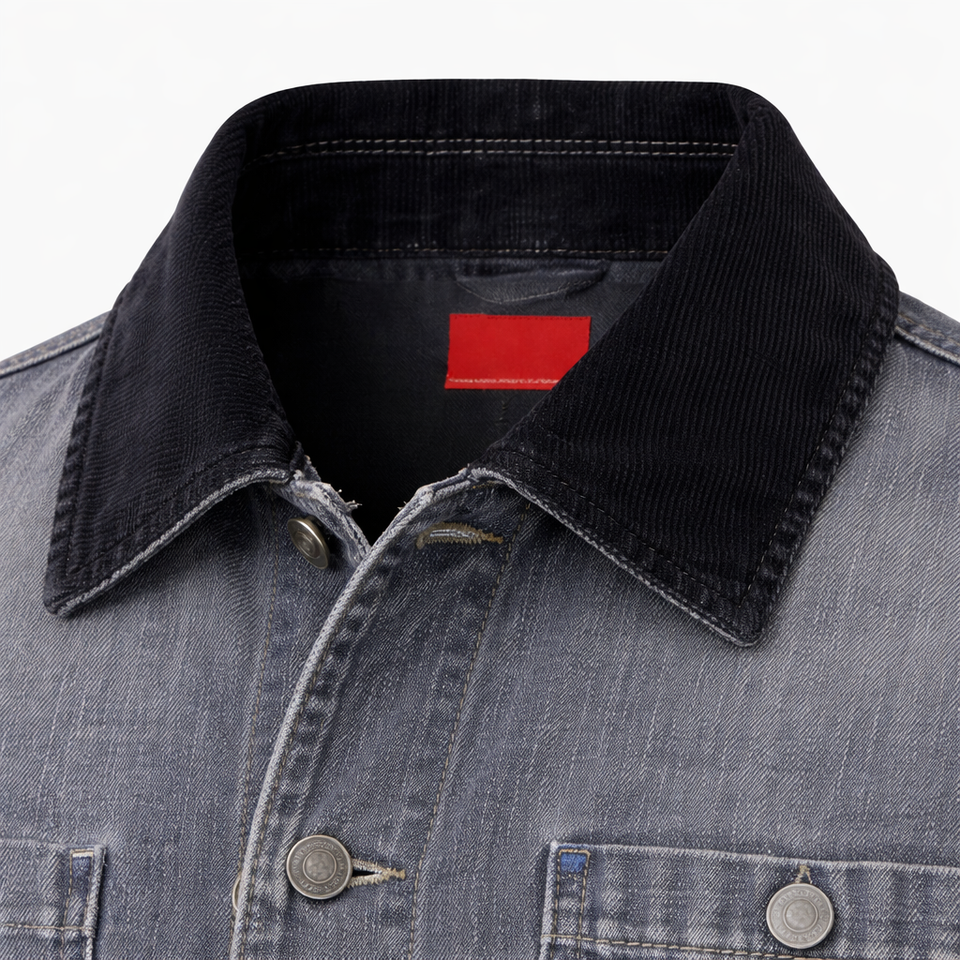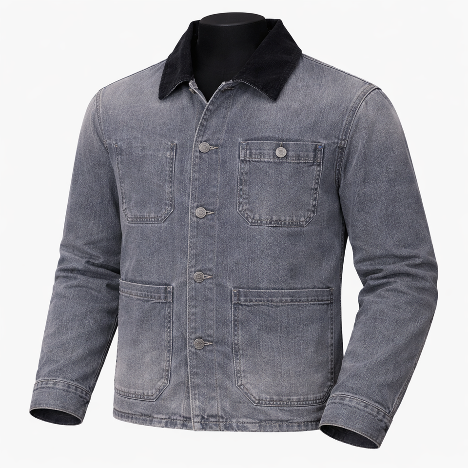 Men’s Vintage Denim Workwear Jacket Corduroy Collar Button Front Casual Streetwear Jean Jacket OEM ODM