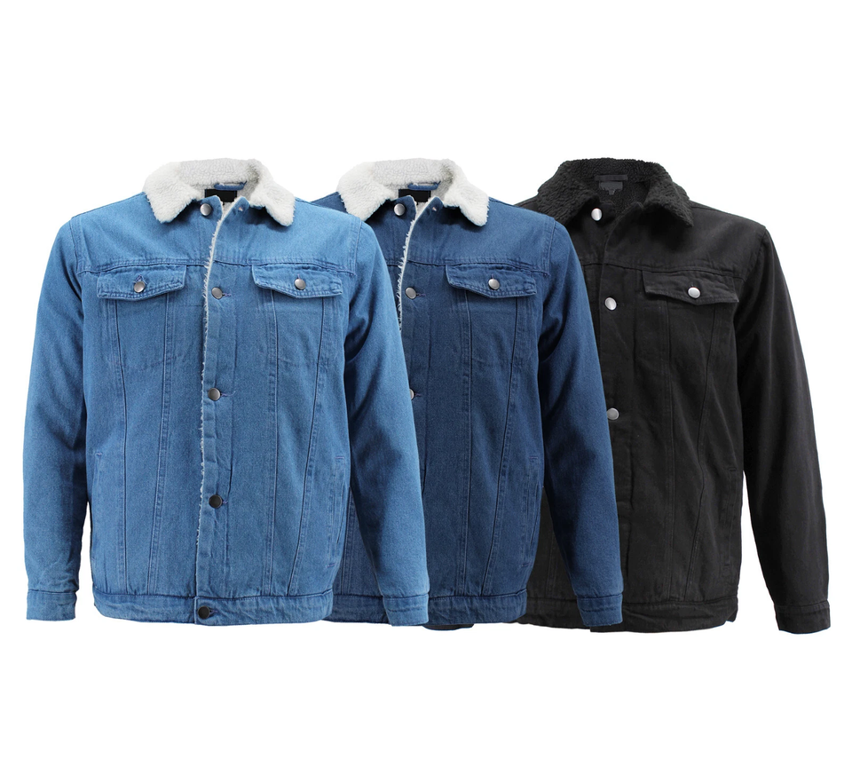 Men's Vintage Formal Denim Trucker Jacket Cotton Blend Sherpa Lined Button up Knitted Casual Jean for Winter