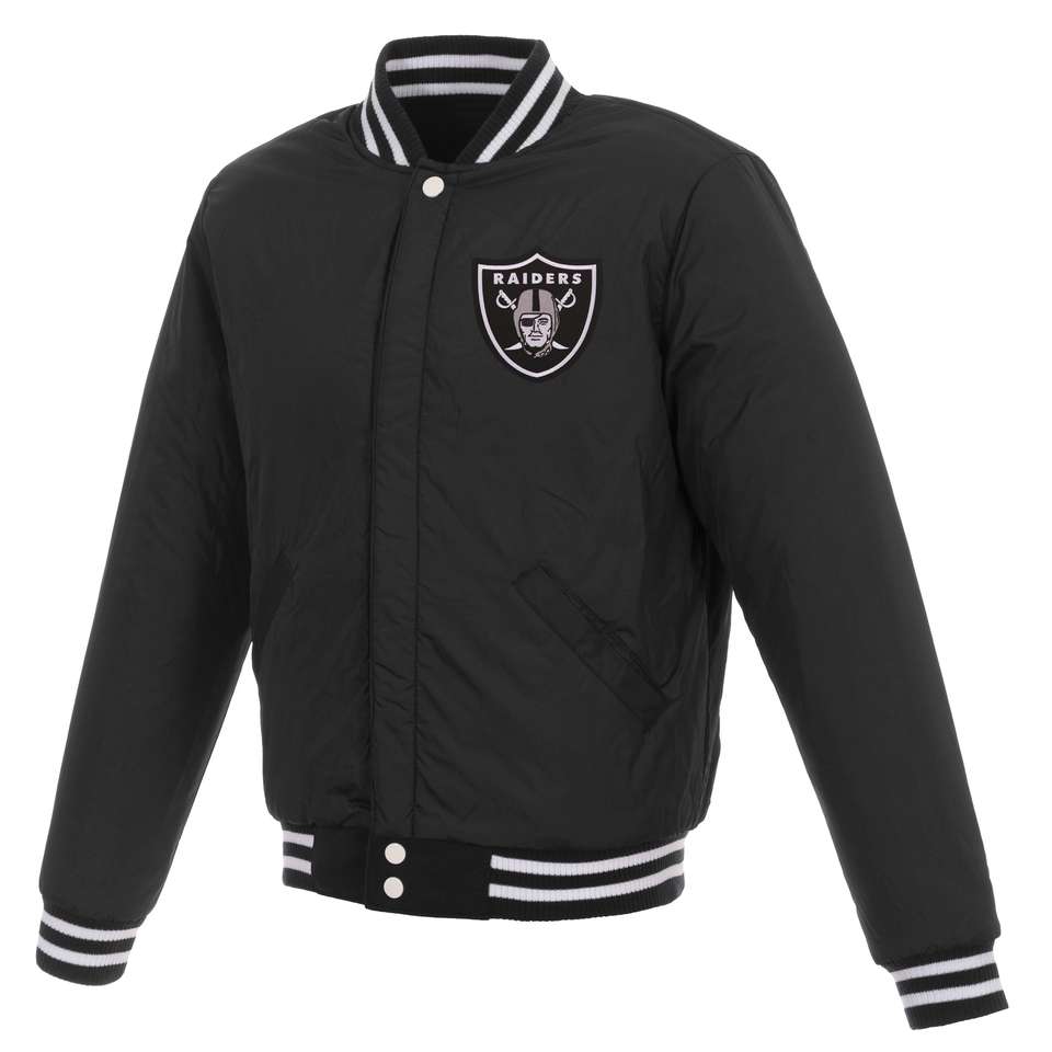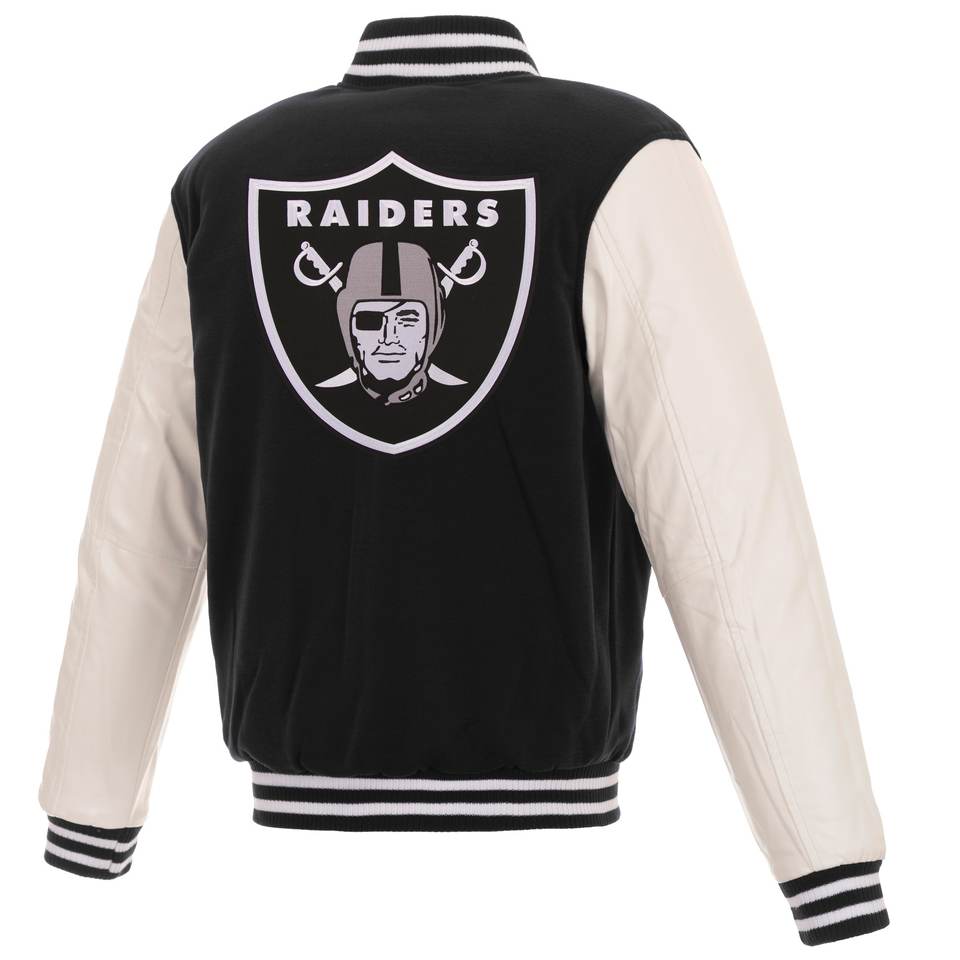Men's Vintage Las Vegas Raiders Full-Snap Woolen Fleece Jacket JH Design Black/White Reversible Jacket Faux Leather Winter