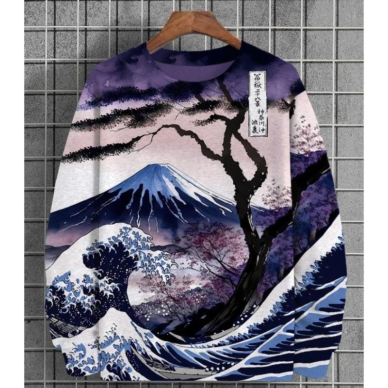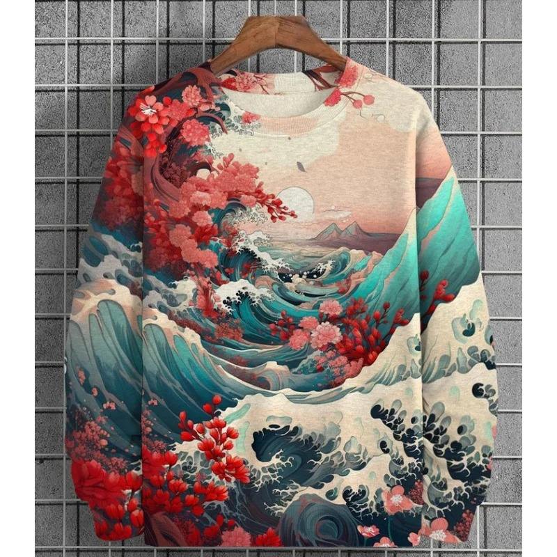 Men's Vintage Plant Graphic Pullover Hoodie Autumn Long Sleeve Oversized Sweatshirt with O-Neck Breathable for Winter