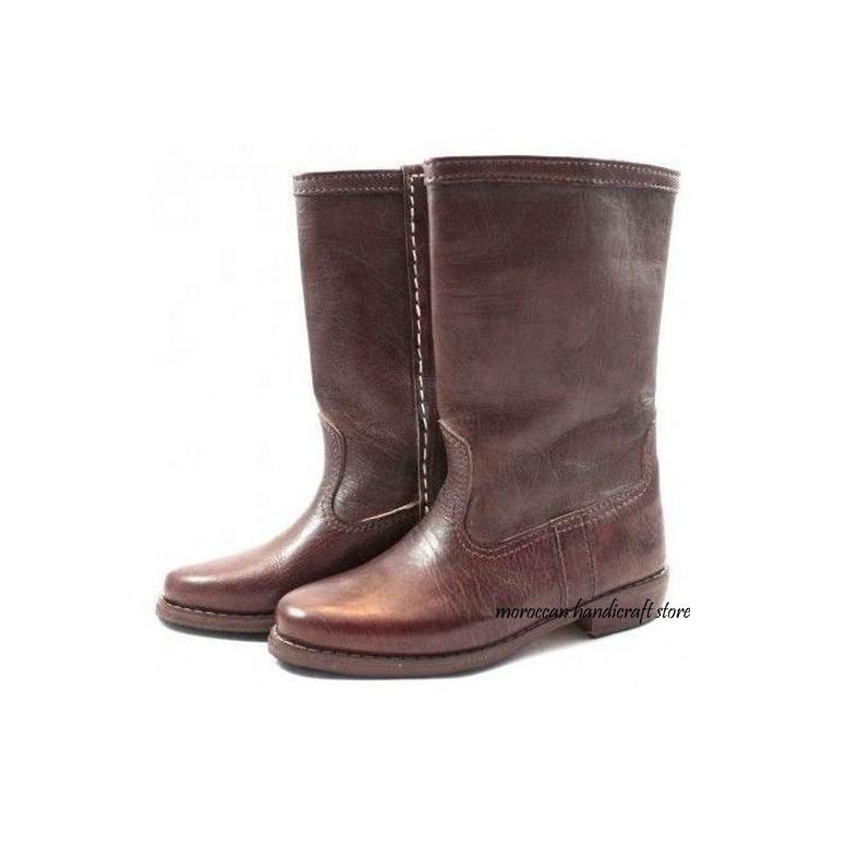 Men's Vintage Tall Genuine Leather Boots Anti-Slippery Anti-Odor Fashionable KILIM Made in Morocco Winter Autumn Summer