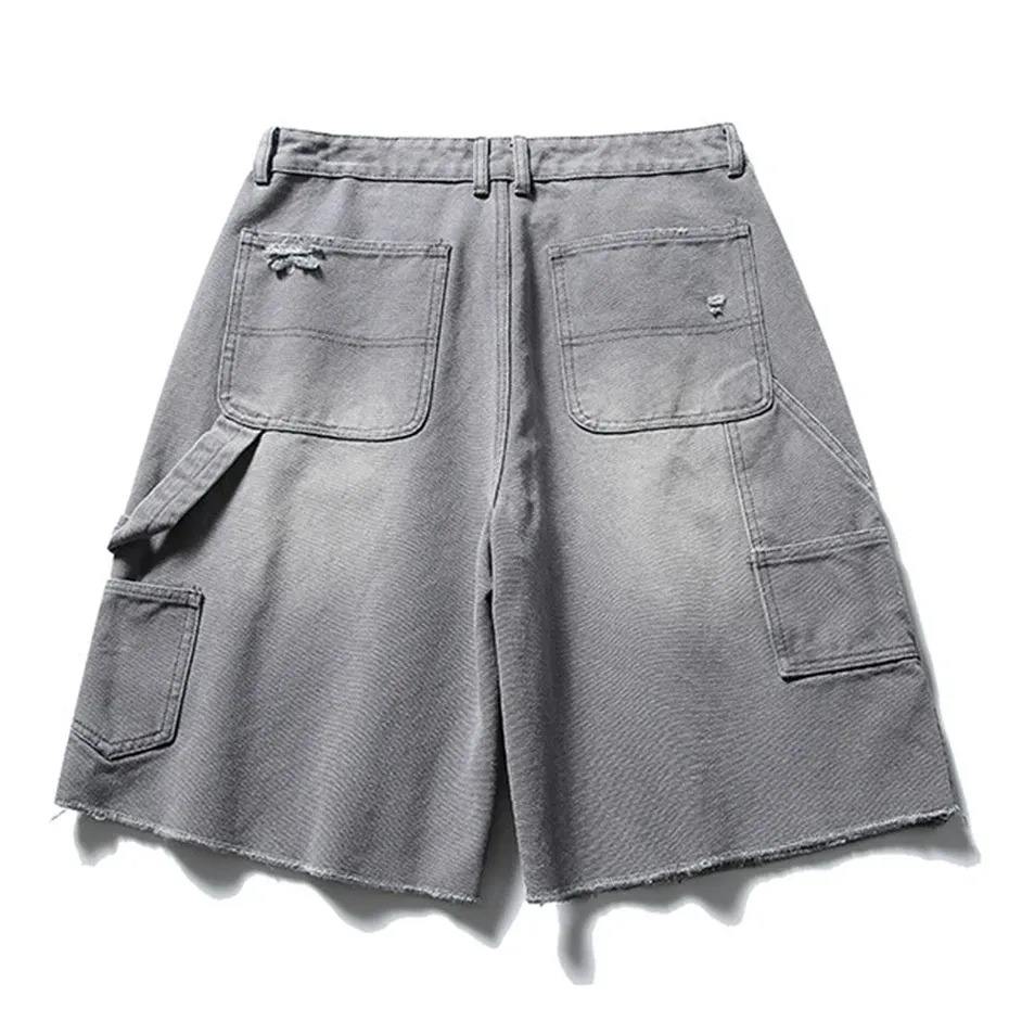 Men's Washed Baggy Summer Streetwear Jeans Shorts with Distressed Embroidery Casual Style Solid Pattern