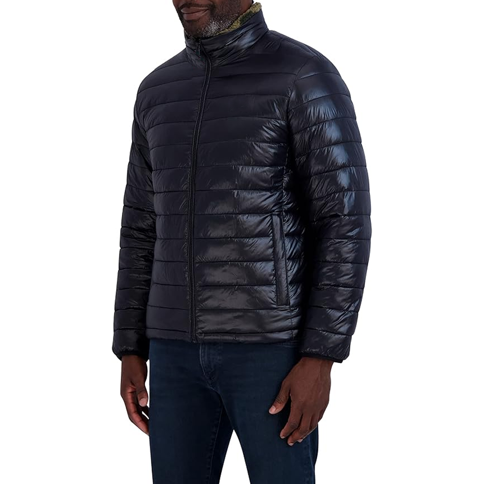 Men's Water Resistant Jacket Long Sleeve Zip up Sherpa Lined Quilted Stretch Coat