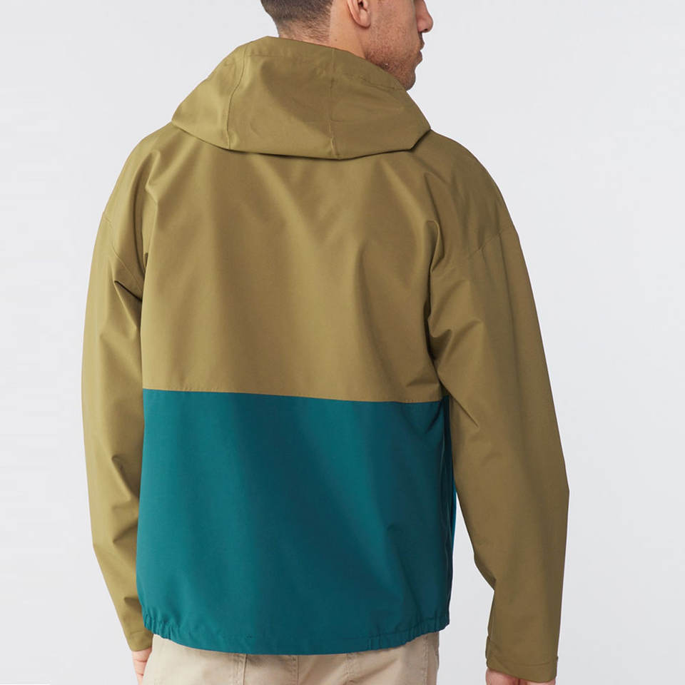 Men's Waterproof Windbreaker Rain Jacket with Hood | Olive Teal Two-Tone Striped Zipper | Technical Outdoor Sportswear Shell
