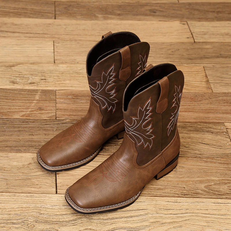 Men's Western Cowboy Boots Big Size 16 Classical Embroidery Wing Biker Rockabilly Block Heel All Seasons
