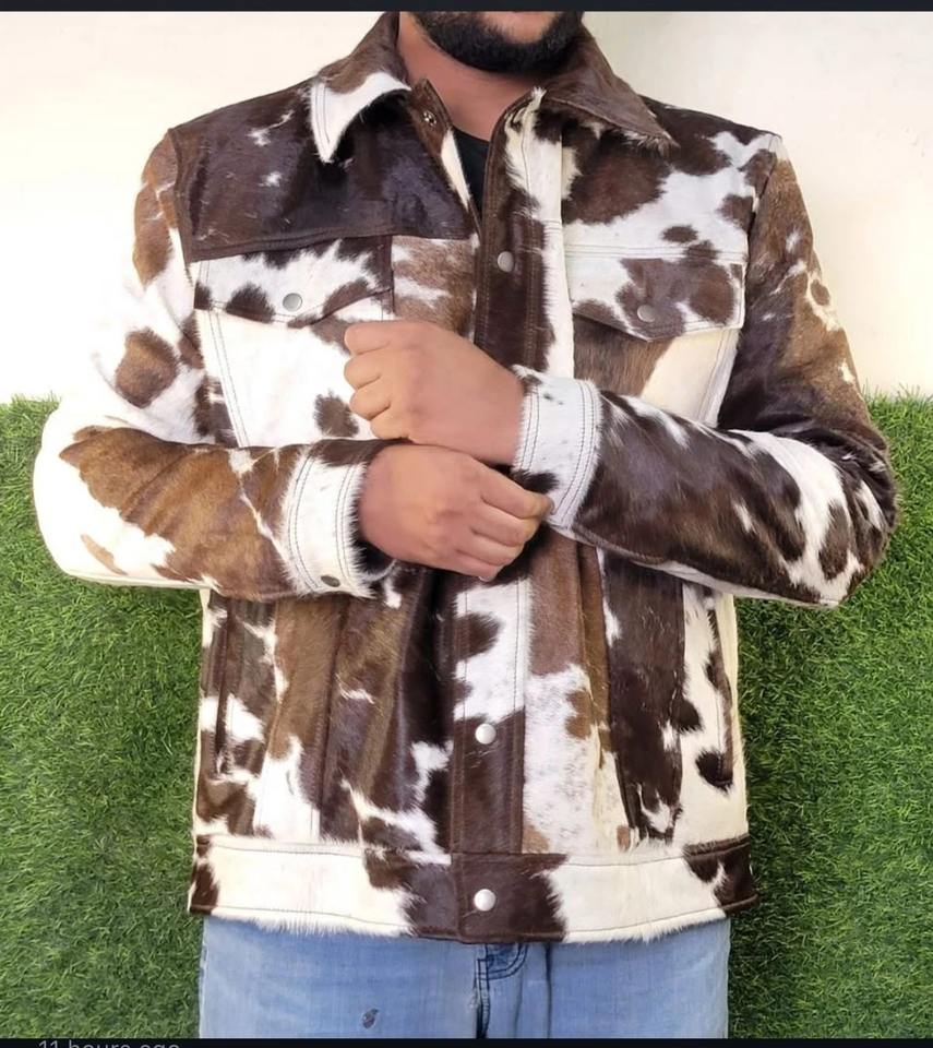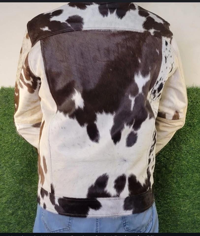 Men's Western Style Cowhide Leather jacket Real Hair On Pony Skin Gift For Him crocodile skin jacket for men