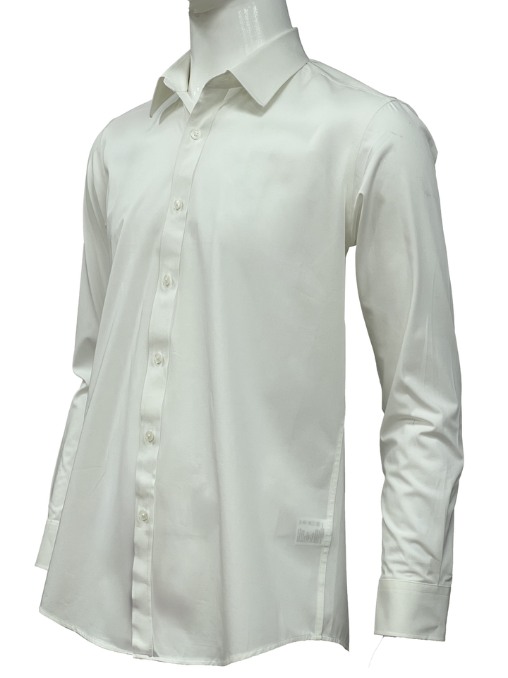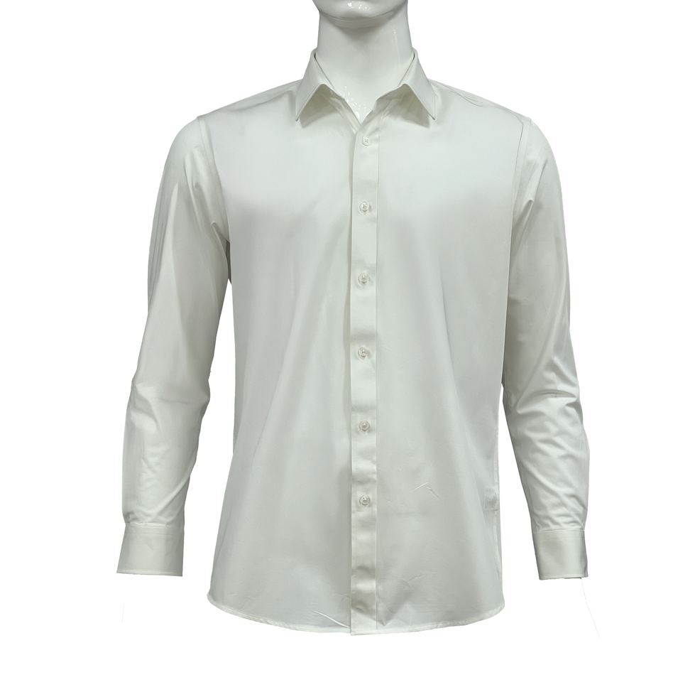 Men's White Business Uniform Short Sleeve Dress Shirt 100% Polyester Breathable Stand Collar Embroidered Logo Eco-Friendly Quick