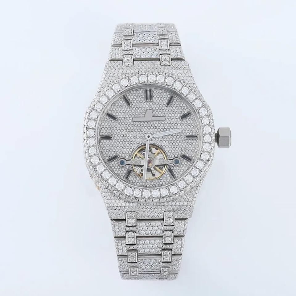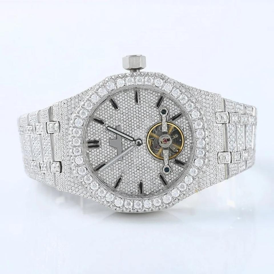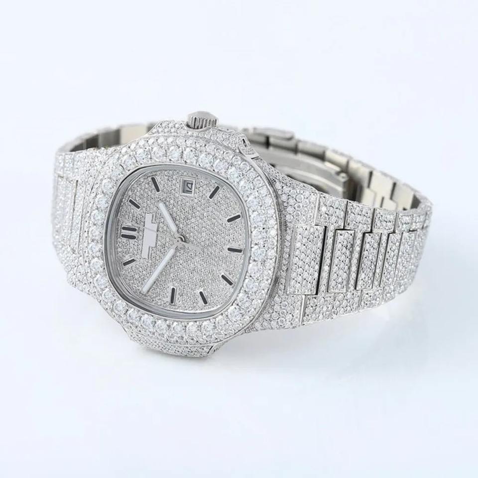 Men's White Gold Stainless Steel Band Automatic Quartz Movement Watch Moissanite Diamond Tester Brand Fashionable Jewelry