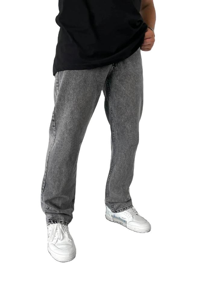 Men's Wide Leg Woolen Flat Front Mid Rise Breathable High Street Style Autumn Loose Straight Baggy Jeans