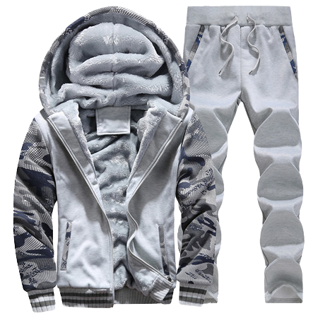 Men's Winter Zipper Hoodies Sweatshirts Casual Thick Fleece 2PC Jacket+Pant Drop Shipping Digital Printed