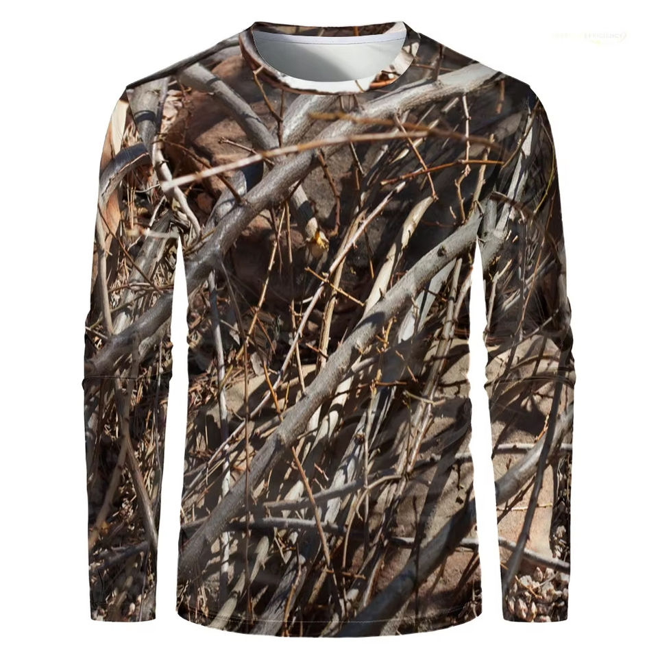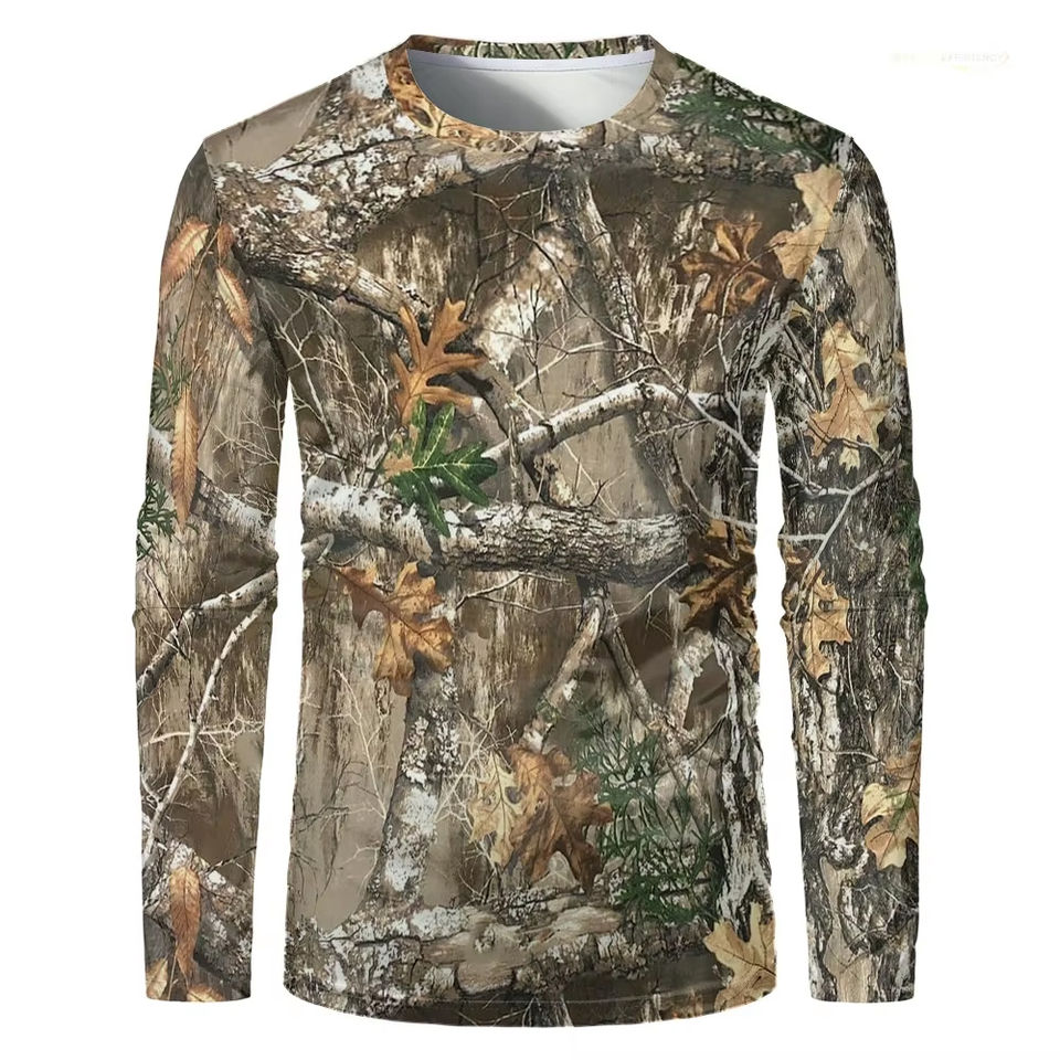 Men's Winter Canvas Long-Sleeve Hunting Shirt Breathable Quick-Drying Tactical Crew Neck T-Shirt