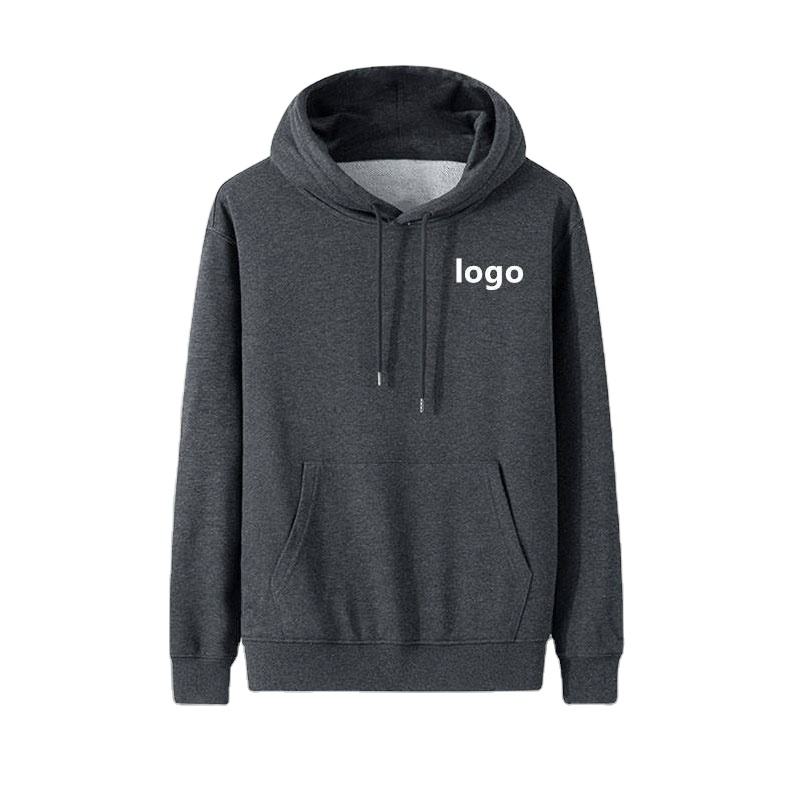Men's Winter Casual Pullover Hoodie 100% Cotton Eco-Friendly Breathable Windproof Solid Custom Front Logo 300-500 Grams