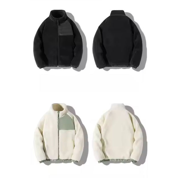 Men's Winter Coat Fleece Jacket Solid Color Pockets Fleece Zip up Jacket Factory Customized Sherpa Fleece Jacket