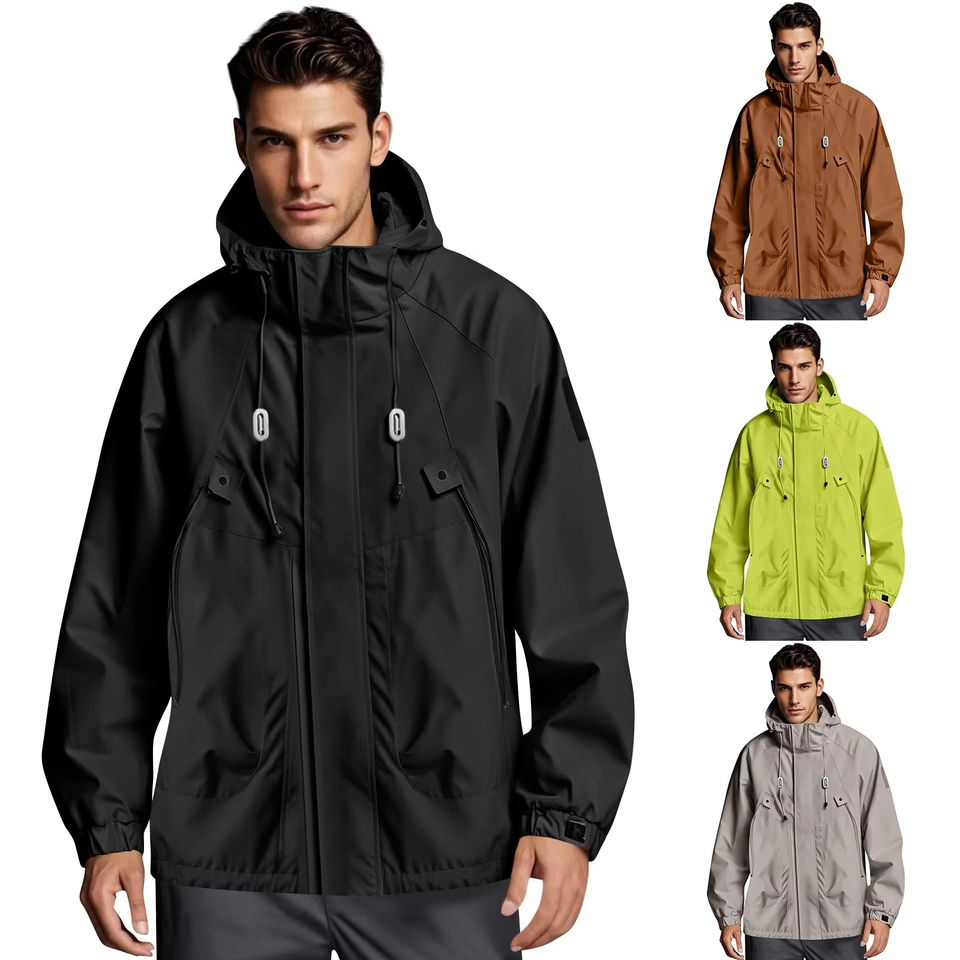 Men's Winter Hooded Quilted Sports Jacket Waterproof Breathable Loose Fit Leopard Print 100% Polyester Outdoor Raincoat