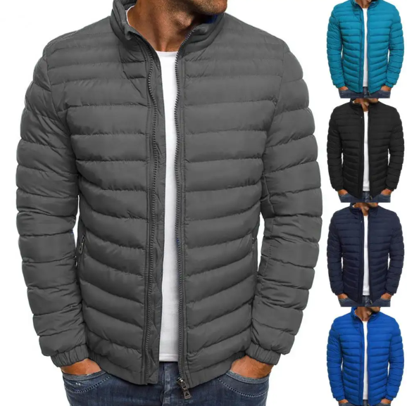 Men's Winter Jacket White Duck Coat With Stand Collar Windproof Warm for Travel & Camping Thicken Solid Wool New Hooded Overcoat