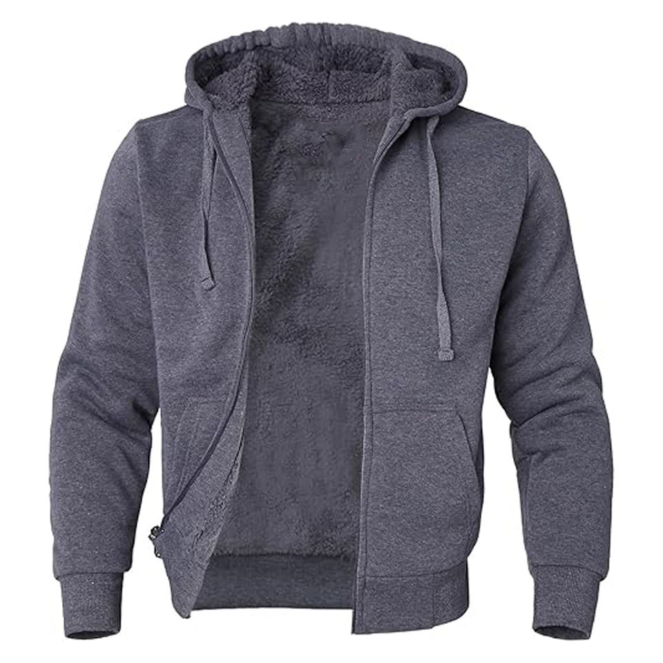 Men's Winter Lined Hoodie Zip Up men Sweatshirt Heavyweight Warm Fleece Jacket with Pockets and drawstrings