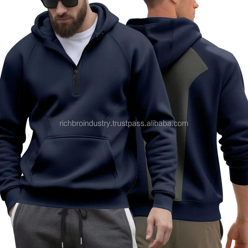 Men's Winter Long Sleeve Hoodie Sweatshirt V-Neck Pocket Oversized Fit Embroidered Customized Fleece Lined Casual Streetwear
