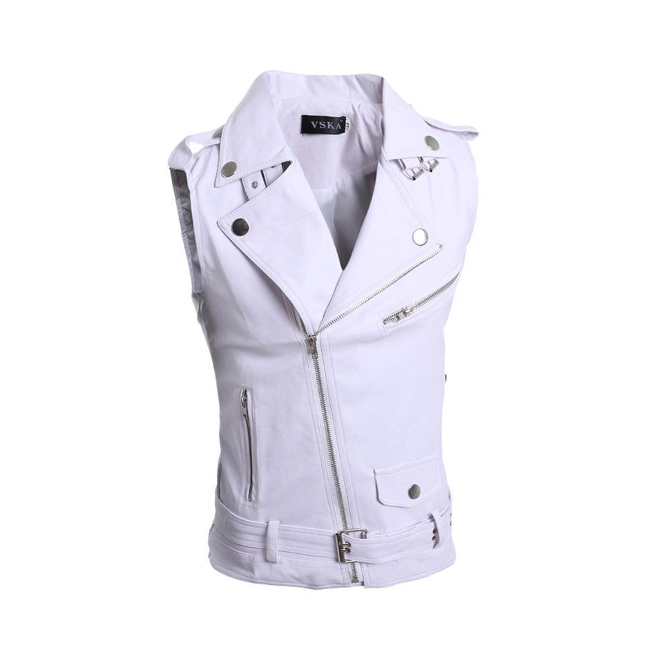Men's Winter Motorcycle Club Leather Vest Reversible Puffer Concealed Carry Arms Solid Back V-Neck Button Breathable Fabric
