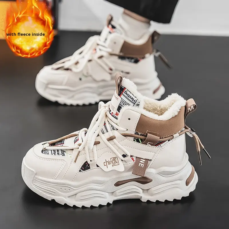Men's Winter Running Shoes 2025 New Thick-Soled Warm Height Increasing Casual Versatile Trendy Lace-Up