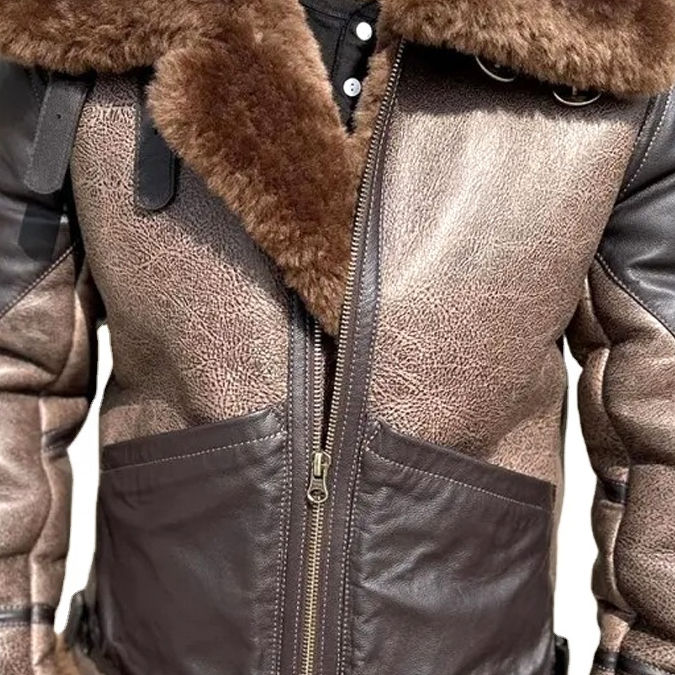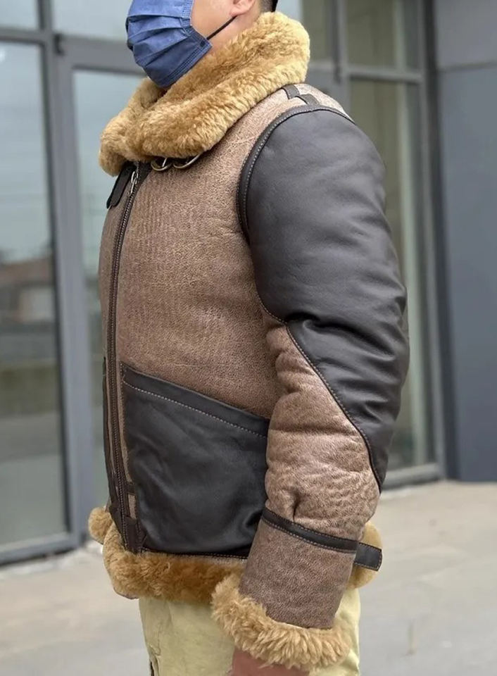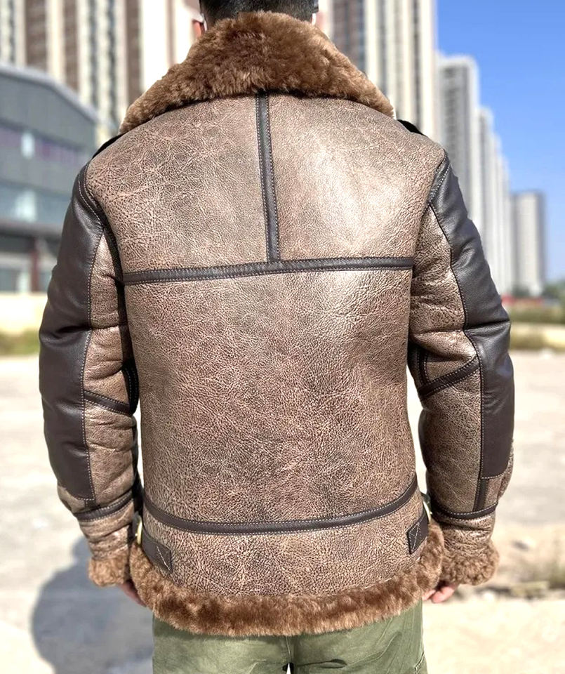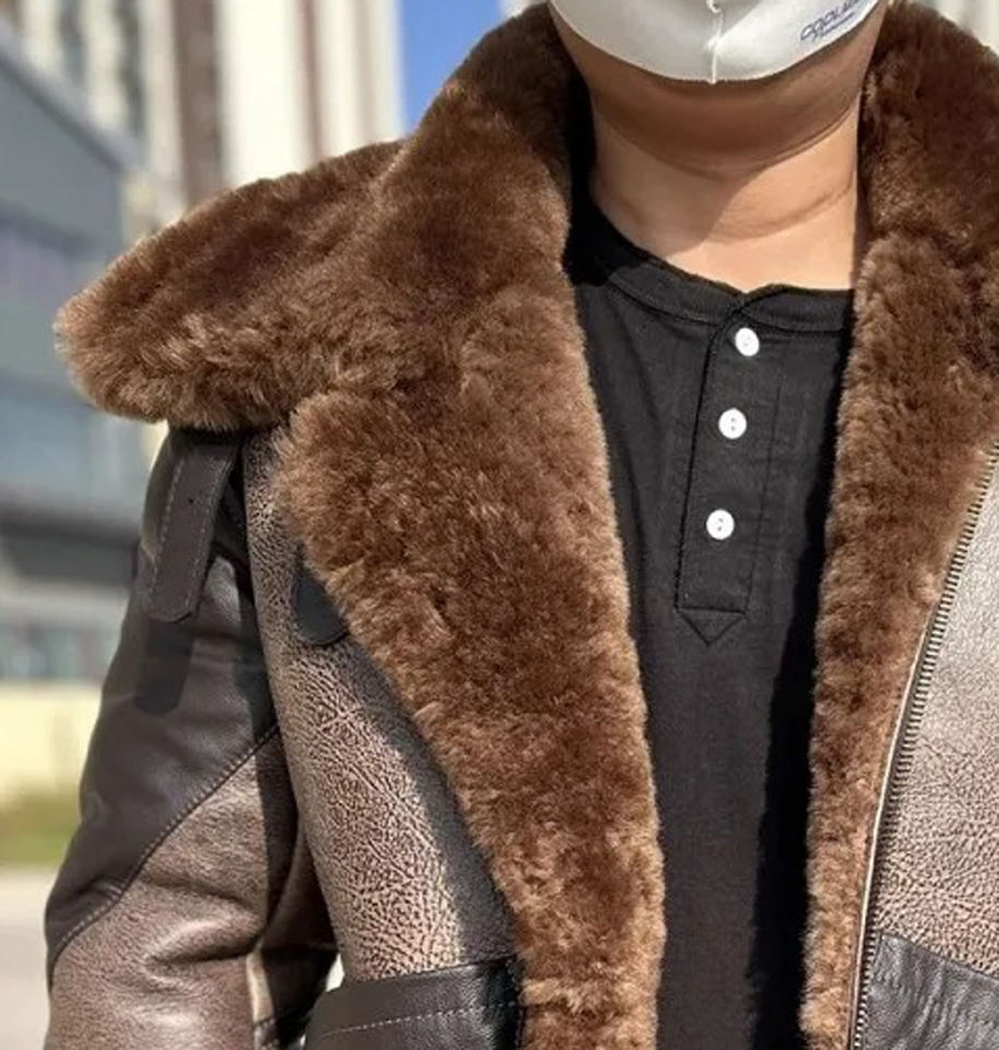 Men's Winter Sheep Skin Genuine Jacket Real Fur Pilot Short Mixed Colors Warm Thicken Wool Zipper Canvas Material Shearling