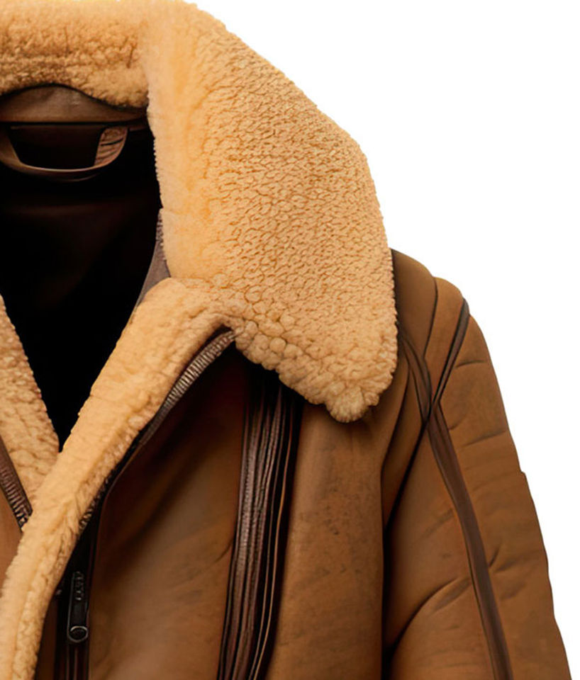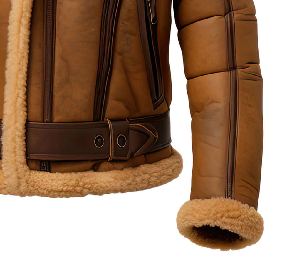 Men's Winter Sherpa Jacket Canvas Sheepskin Leather Fur Casual Windproof Breathable Hooded Front Logo
