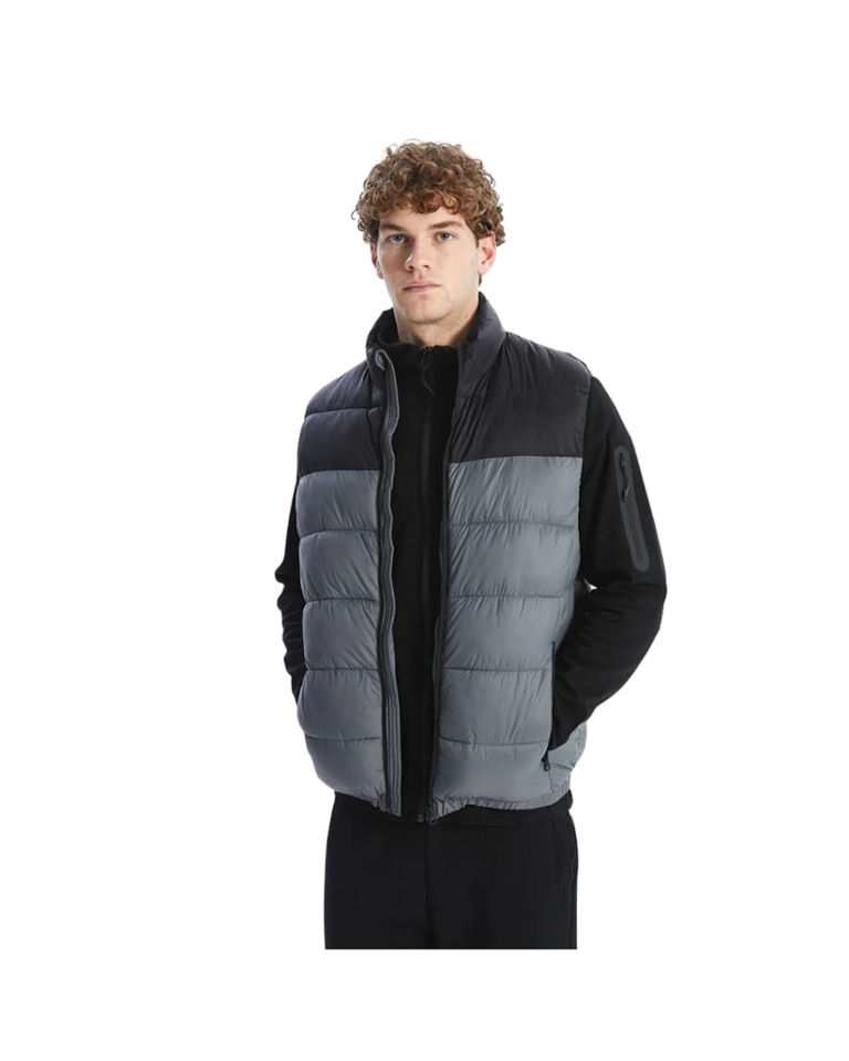 Men's Winter Sleeveless Puffer Jacket with Stand Collar Smart Casual Style Front Logo Solid Pattern Zipper Closure Dyed