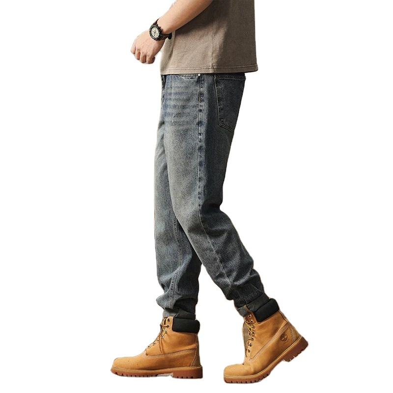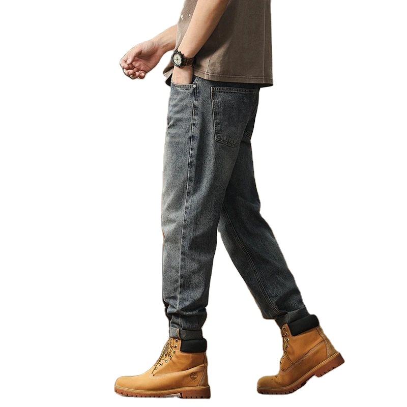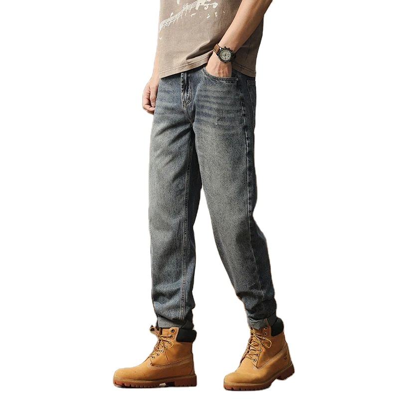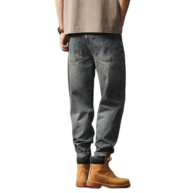 Men's Winter Summer Casual Denim Pants Stylish Formal Design with Loose Elastic Straight Leg Breathable Washed Solid