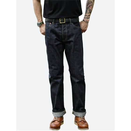 Men's Winter Summer Solid Breathable 100% Cotton Button Casual Lightweight Unsanforized Raw Selvedge Denim Mid Waist Vintage