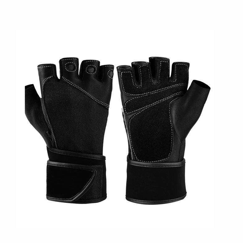 Men's Women's All-Black Half-Finger Workout Gloves Wrist Support Grip Padding Breathable Leather for Outdoor Gym Workouts Casual