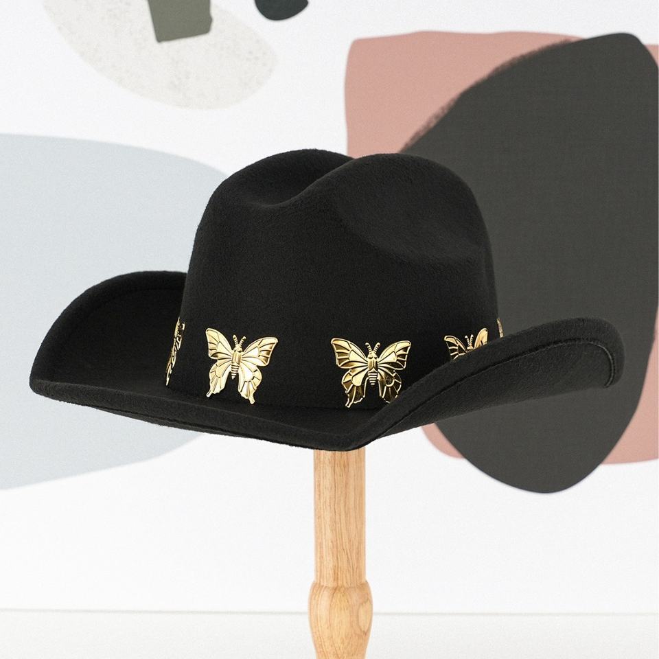 Men's Women's Retro Western Cowboy Hat Vintage Felt Printed Butterfly Personalized Party Jazz Cowboy Hats