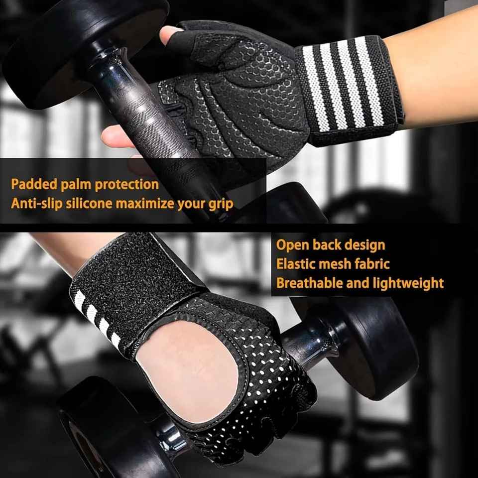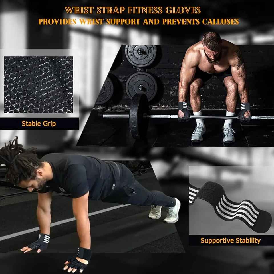 Non-Slip, Adjustable Wrist Strap, Hand Grips, Lightweight, Breathable, Moisture wicking, Half Finger/Fingerless