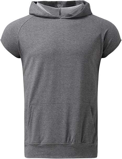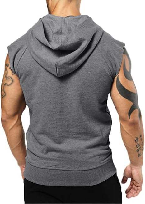 Men's Workout Hooded Tank Top Sleeveless Gym Sports Hoodies Muscle Cut Off T Shirt with Pocket