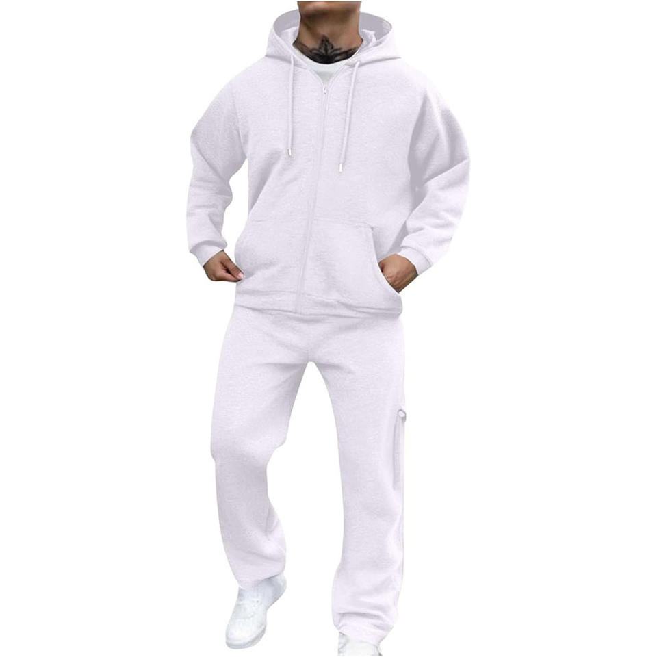 Men's Workout Tracksuit Long Sleeve Full Zip Hoodie Jogger Sweatsuit Running Set