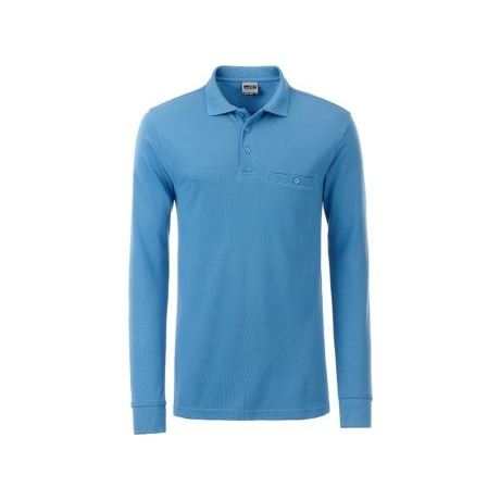 Men's Workwear Longsleeve for Polo with Chest Pocket Easy-Care and Durable Embroidered Dark Solid Pattern Made of Spandex