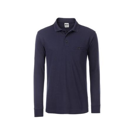 Men's Workwear Longsleeve for Polo with Chest Pocket Easy-Care and Durable Embroidered Dark Solid Pattern Made of Spandex