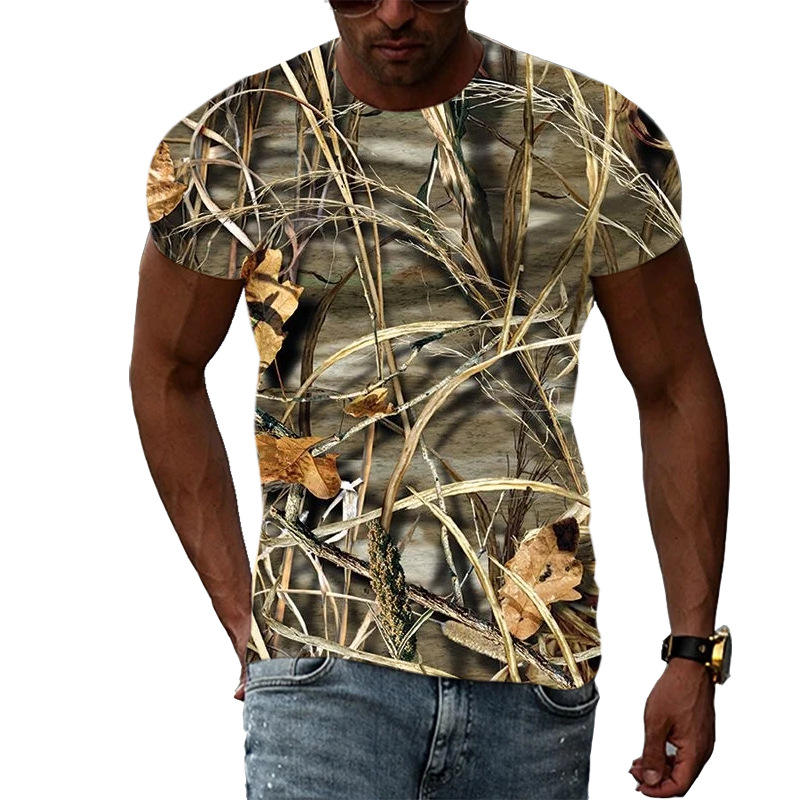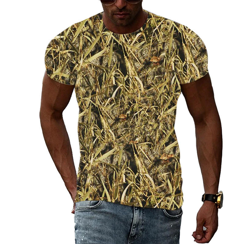 Men's Youth's Breathable Summer Green Camo T-Shirt Short Sleeve Formal Stretch Hunt Logo Hunting Print Animal Formal Wear