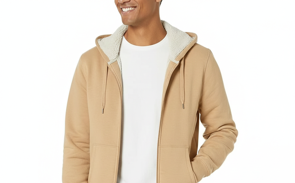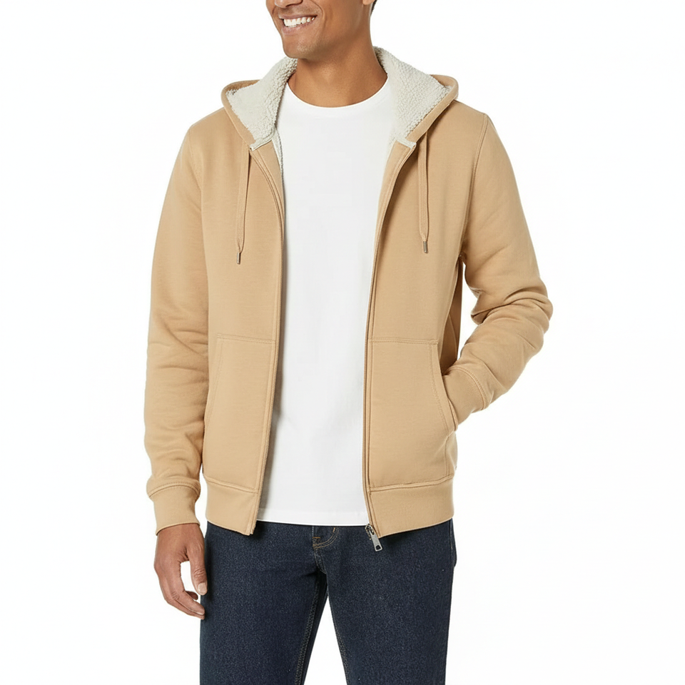 Men's Zipper-Up Fleece Hoodie 100% Cotton Thermal Long Sleeve Outdoor Tactical Warm Fuzzy OEM Service Front Coats Hooded Outwear
