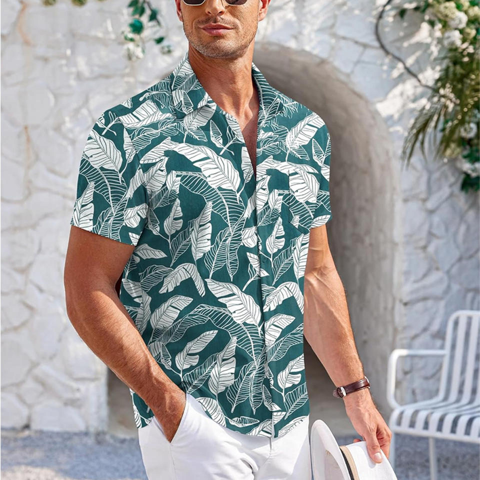Men's casual button-up shirt with short sleeves available for bulk orders custom tags colors branding and embroidery