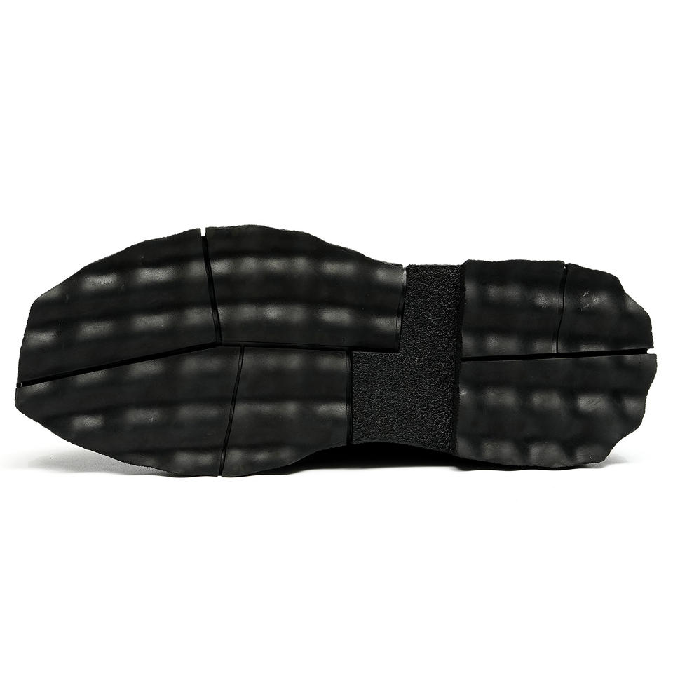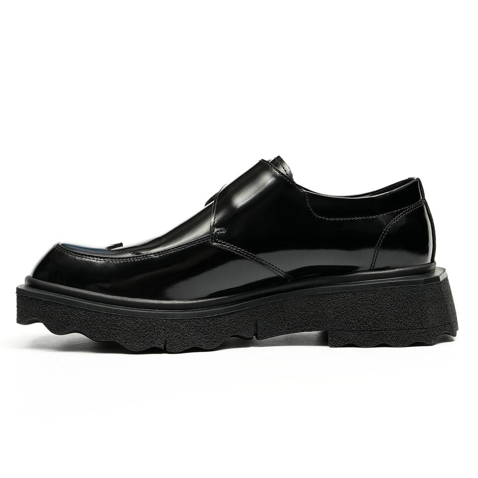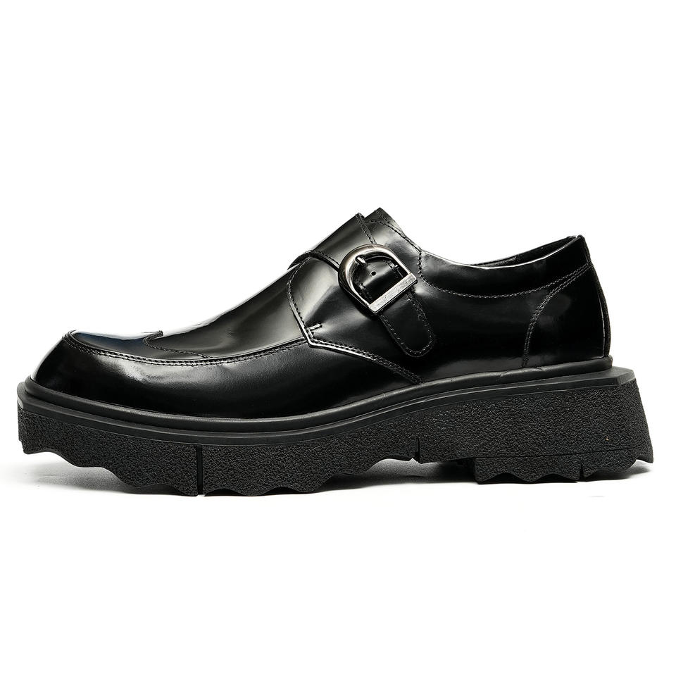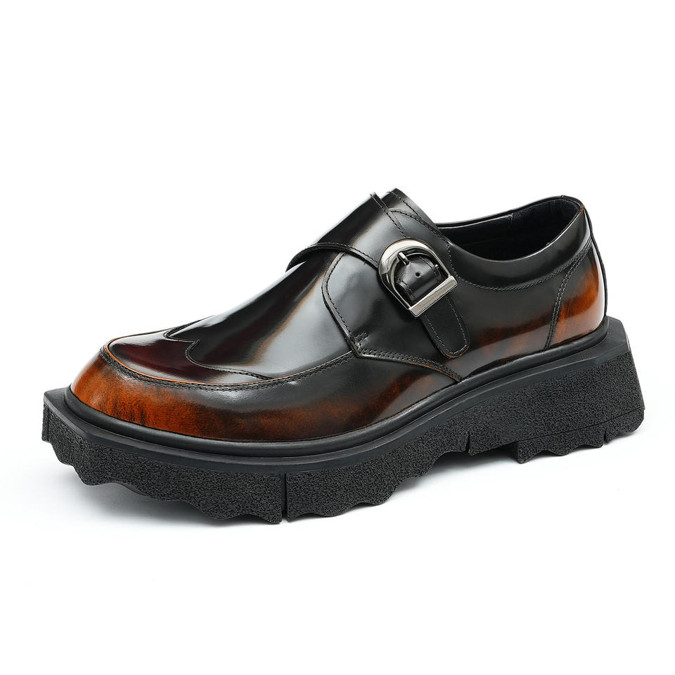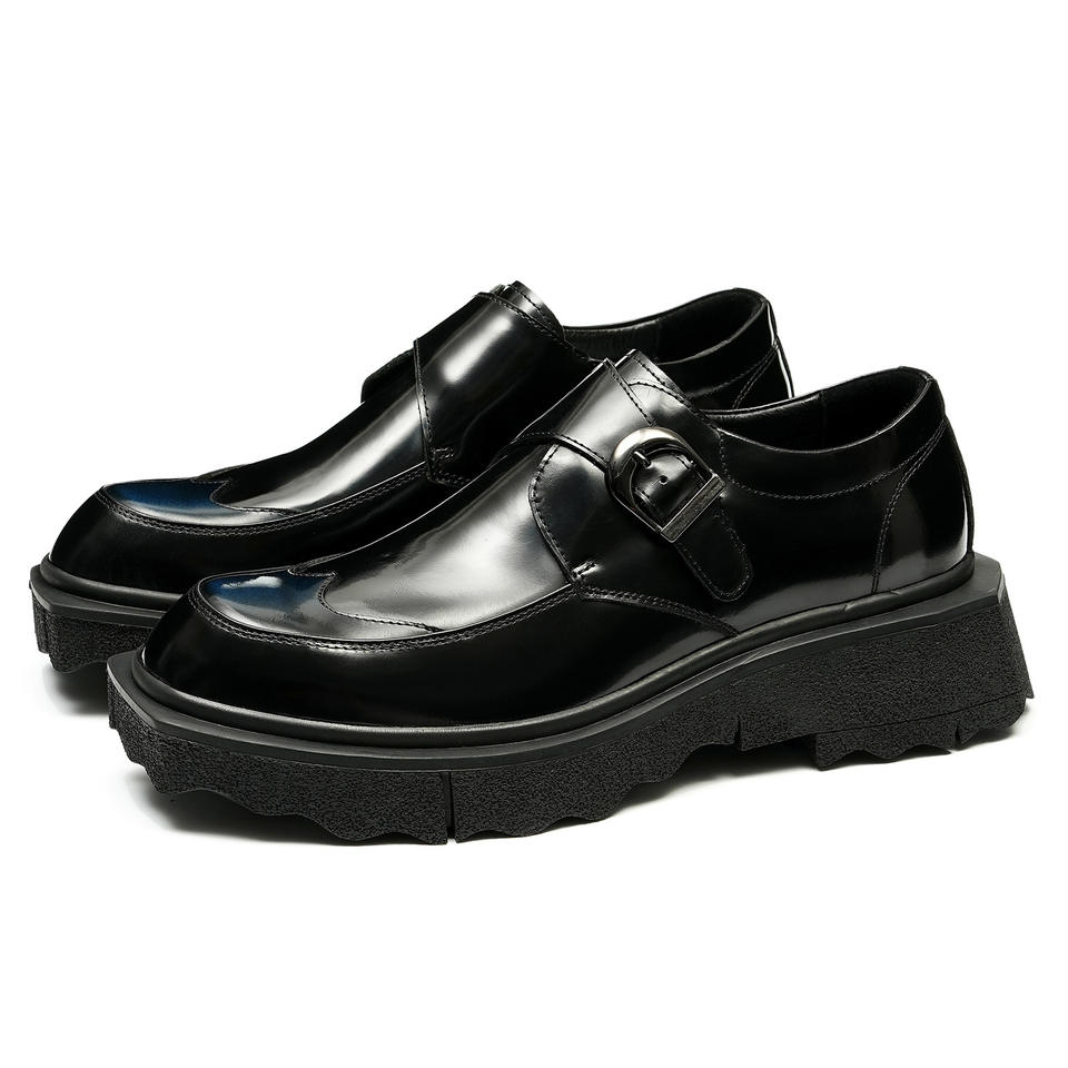 Men's casual leather pointed toe top-grain cowhide business formal dress shoe with buckle and thick sole for heightening.