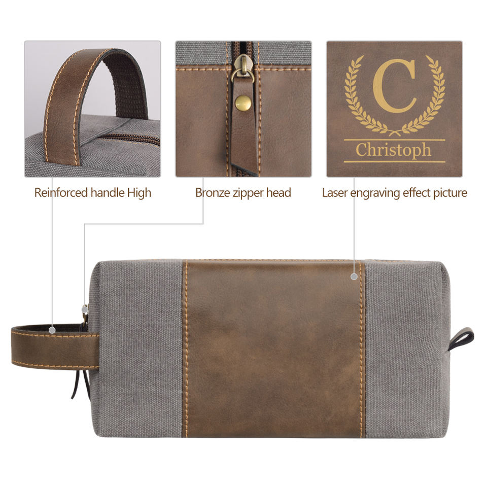Men's for Bag Large Capacity Portable Hand Carry Cosmetic Bag Retro Canvas Waterproof Pu Leather Zipper Soft Handle Travel