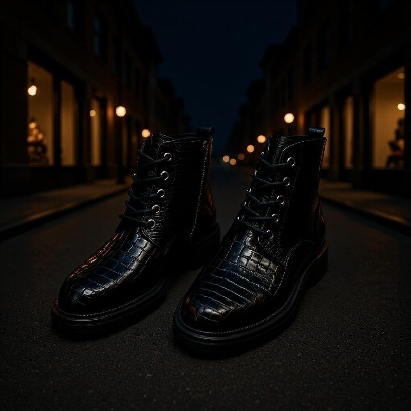 Men's for Leather Lace-Up High Top Boots Genuine Leather Lining PVC Rubber Sole Fashion Trend Winter/Autumn Shoes