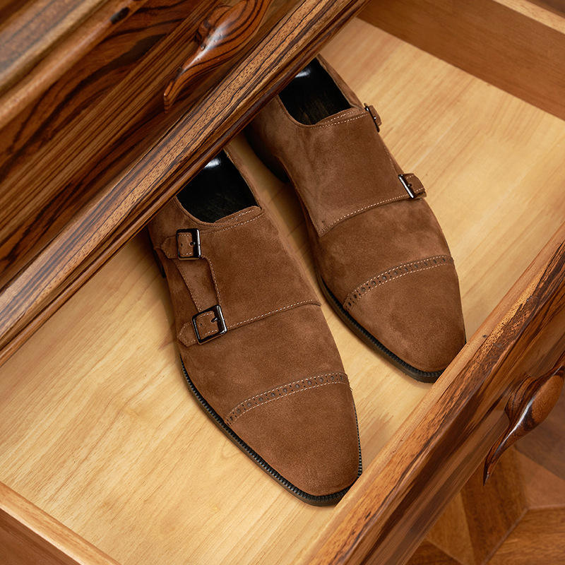 Men's genuine leather shoes with laces, square toe, lightweight, anti-slipcomfortable and breathablewith composite rubber sole