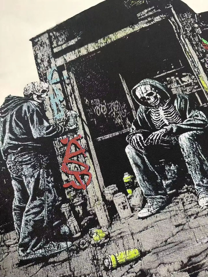 Men's Gothic Style Vintage Oversized Short Sleeve T-Shirts 260 Grams Breathable Quick Dry Making You Stand Out on Summer Streets