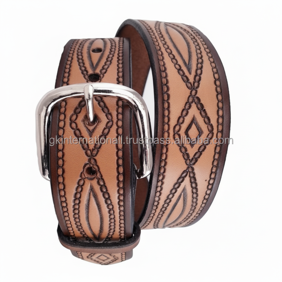 Men's Hand Carved Rope Design Embossed Genuine Western Leather Tooling Belt for Men & Women in All Custom Sizes and Best Price