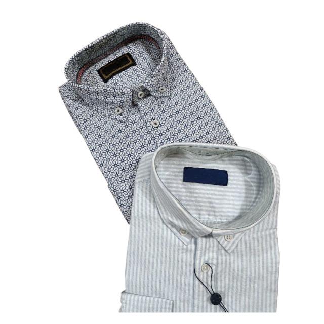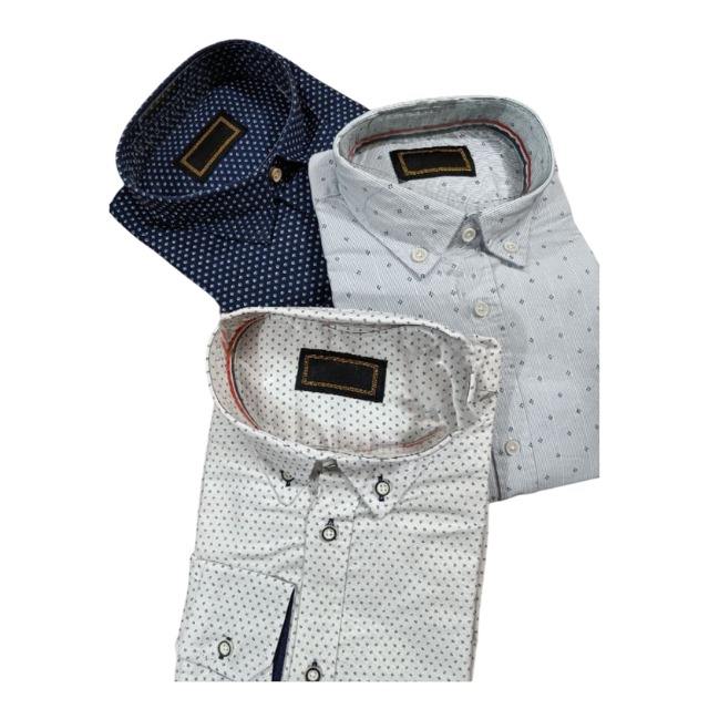 Men's Classic Shirt with Trendy Minimal All-Over Print 100% Cotton Single Breasted Casual Style