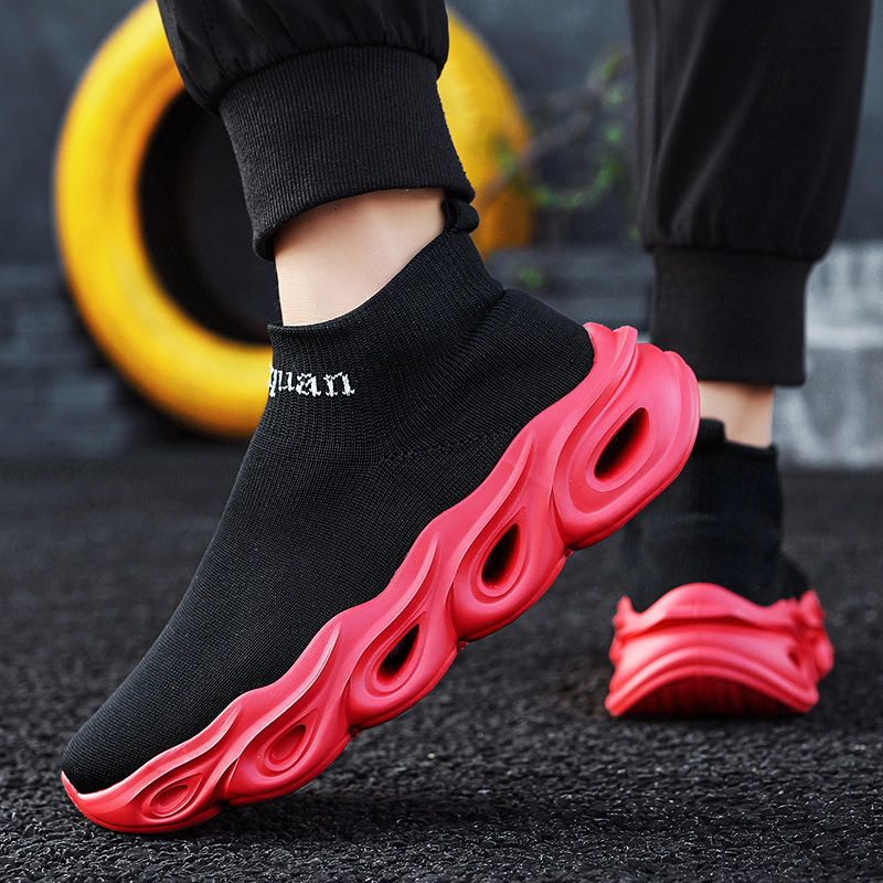 Men's mid-top thick sock shoes for autumn and winter new lightweight breathable thick-soled athletic shoes