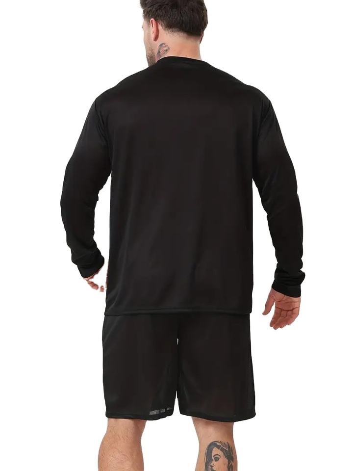 Men's sportswear long sleeved sportswear round neck T-shirt pure black suitable for running gym daily fitness activities