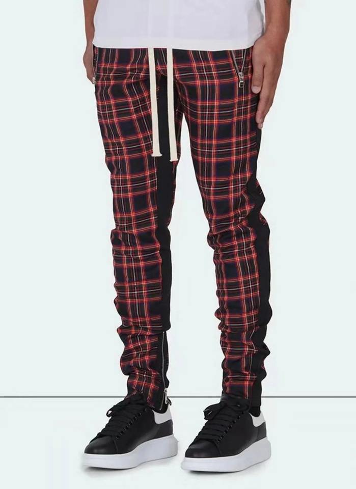 Men's spring and summer fashion casual two-color plaid tracksuit pants with zipper bottoms fitness pants