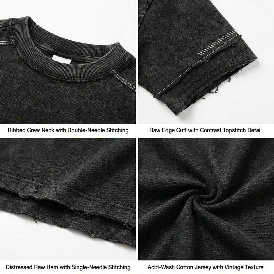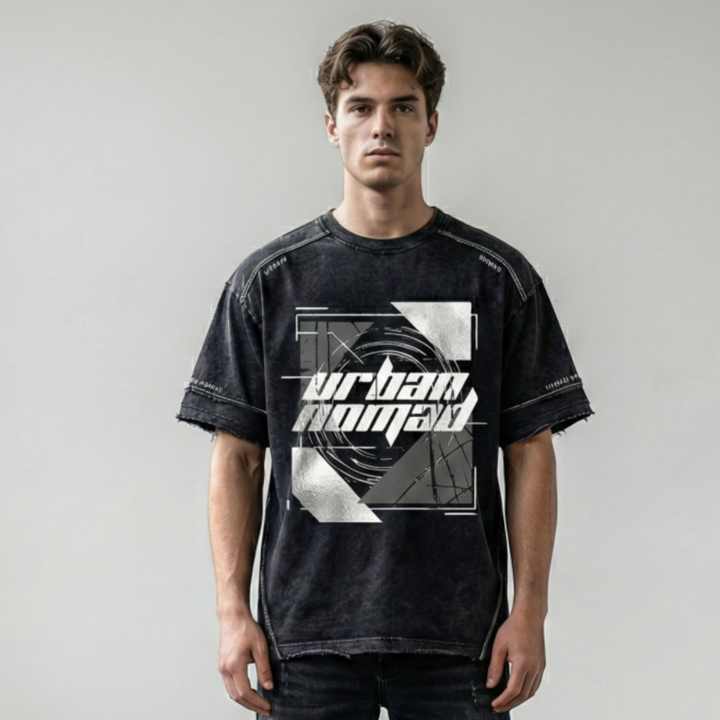 Men's streetwear fashion Vintage Acid Wash t-shirt hot supplier Custom Graphic Distressed Cuffs heavy Cotton Loose Fit t shirt