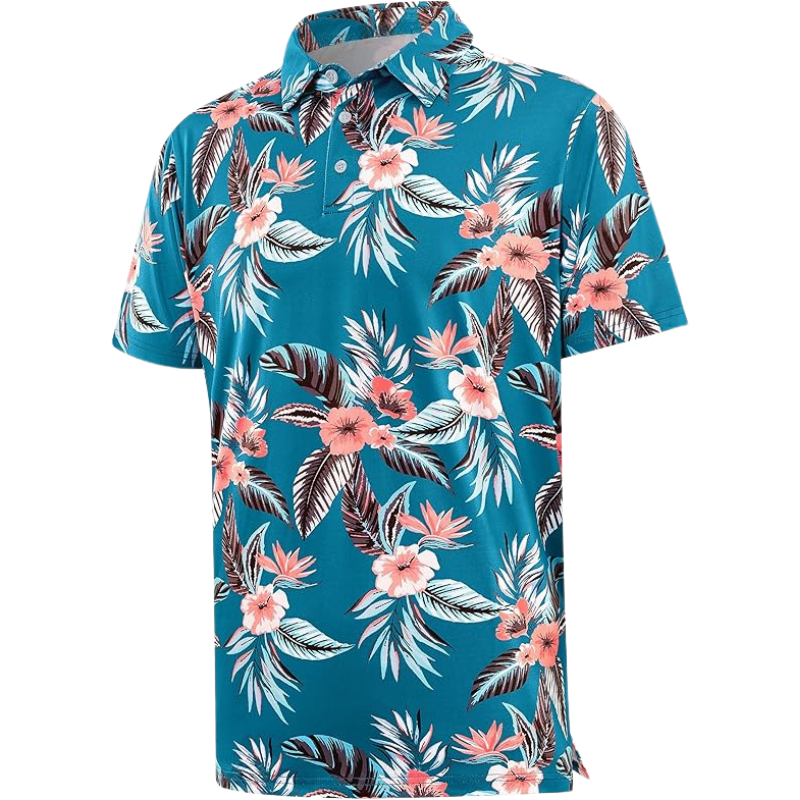 Men's tropical hawaiian floral polo shirt breathable summer beach holiday printed short sleeve casual top